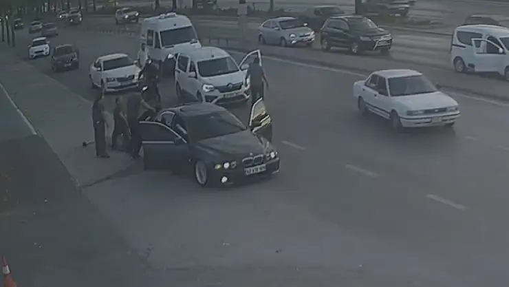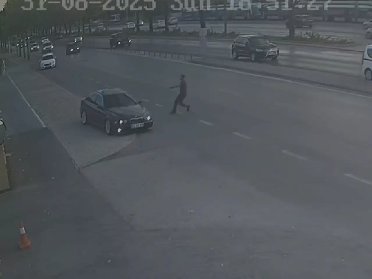 Trafik yoğunluğu nedeniyle kaldırıma çıkan maganda ekip aracından inen polis memurunun dur ikazına bir kez daha uymayarak kaçmaya devam etti. Polis memuru aracın kaçmasını önlemek amacıyla aracın sol arka lastiğine ateş ederek durdurdu.