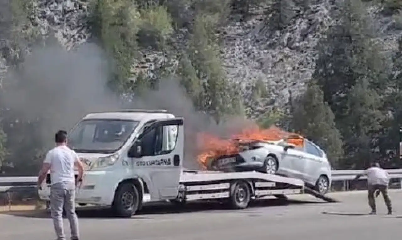 İHA’nın aktardığı bilgilere göre olay, Antalya-Konya Karayolu üzerinde bulunan Demirkapı Tüneli yakınlarında yaşandı. Edinilen bilgiye göre, Antalya'dan Derebucak ilçesi yönüne doğru ilerleyen çekicinin üzerindeki otomobil, tünel çıkışına yakın bir noktada henüz belirlenemeyen bir nedenle yanmaya başladı.