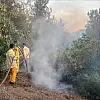 Ekipler, sarp kayalıkların da olduğu alanda yangını büyümeden kontrol altına almak için çaba gösteriyor.