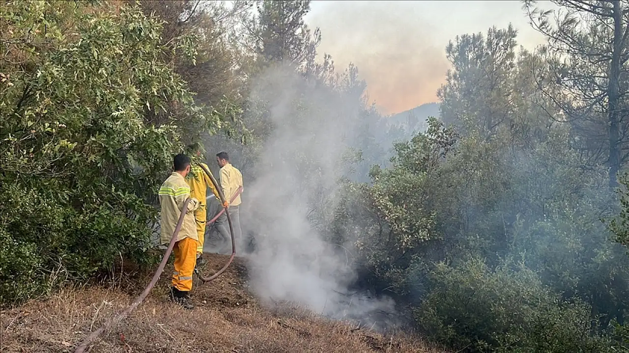 Ormanlık alanda çıkan yangına ekipler müdahale ediyor.