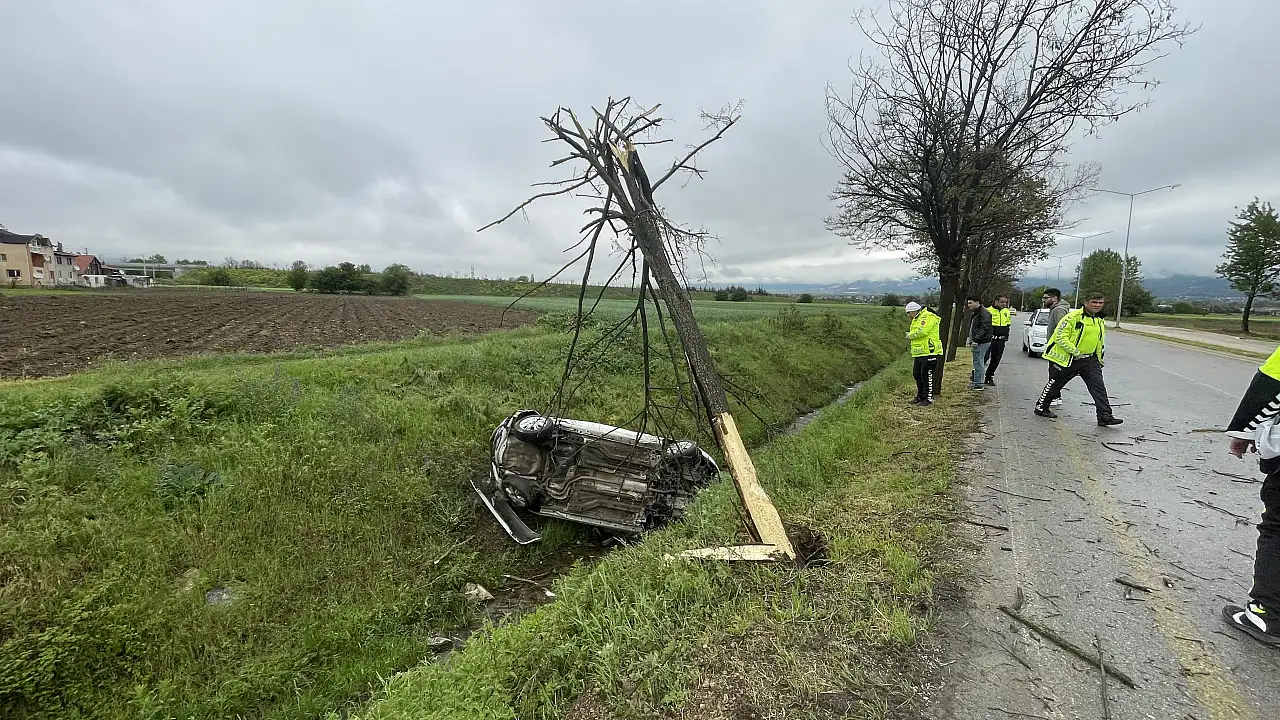 Gücük Deresi istikametinde kontrolden çıkarak yol kenarındaki işaret tabelası ve ağaca çarpan ve sonrasında devrilen otomobildeki 2 kişi hastaneye kaldırıldı.
