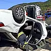 Araçta sıkışan sürücünün eşi Z.N, itfaiye ekipleri tarafından bulunduğu yerden kurtarıldı.