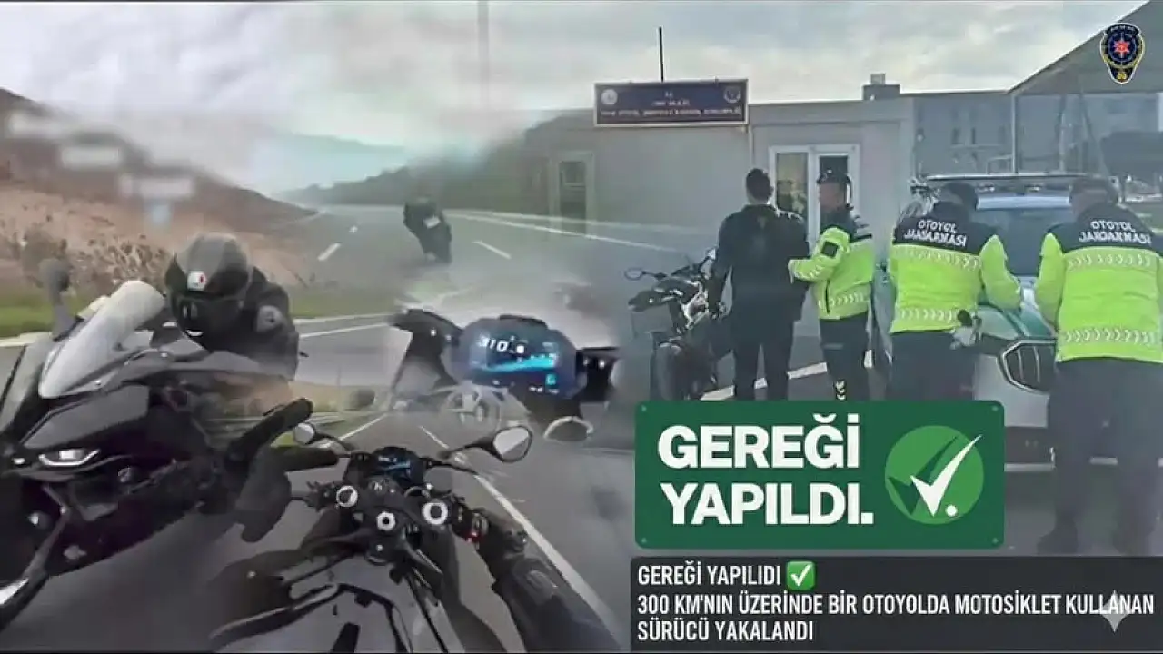 İçişleri Bakanı Ali Yerlikaya, otoyolda 300 kilometrenin üzerinde hız yaparak makas atan motosiklet sürücüsünün yakalandığını duyurdu. Sosyal medyada paylaşılan görüntüler üzerine başlatılan çalışma sonucu sürücü hakkında adli ve idari işlem uygulandı.