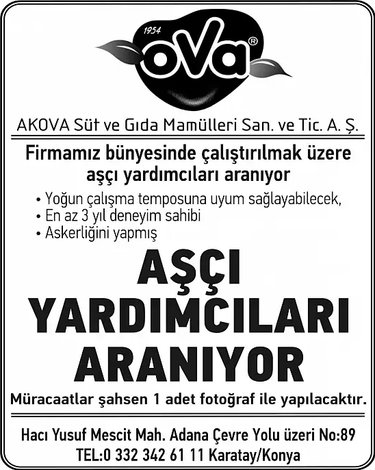 Haberler Konya Eleman İlanları Ova Süt Aşçı Yardımcısı Alacaktır. Ova Süt Aşçı Yardımcısı Alacaktır. En az 3 yıl deneyimli askerliğini yapmış aşçı alınacaktır.Detaylar ilan görselinde. PAYLAŞ 08.08.2025 14:34 Güncelleme: 08.08.2025 14:34 TAKİP ET 1 1 PAYLAŞ Görsel - 1 : Ova Süt Aşçı Yardımcısı Alacaktır. Hakimiyet Gazetesi - Hakimiyet Haber - Bizi Sosyal Medyada Takip Edin! Facebook X.com Instagram