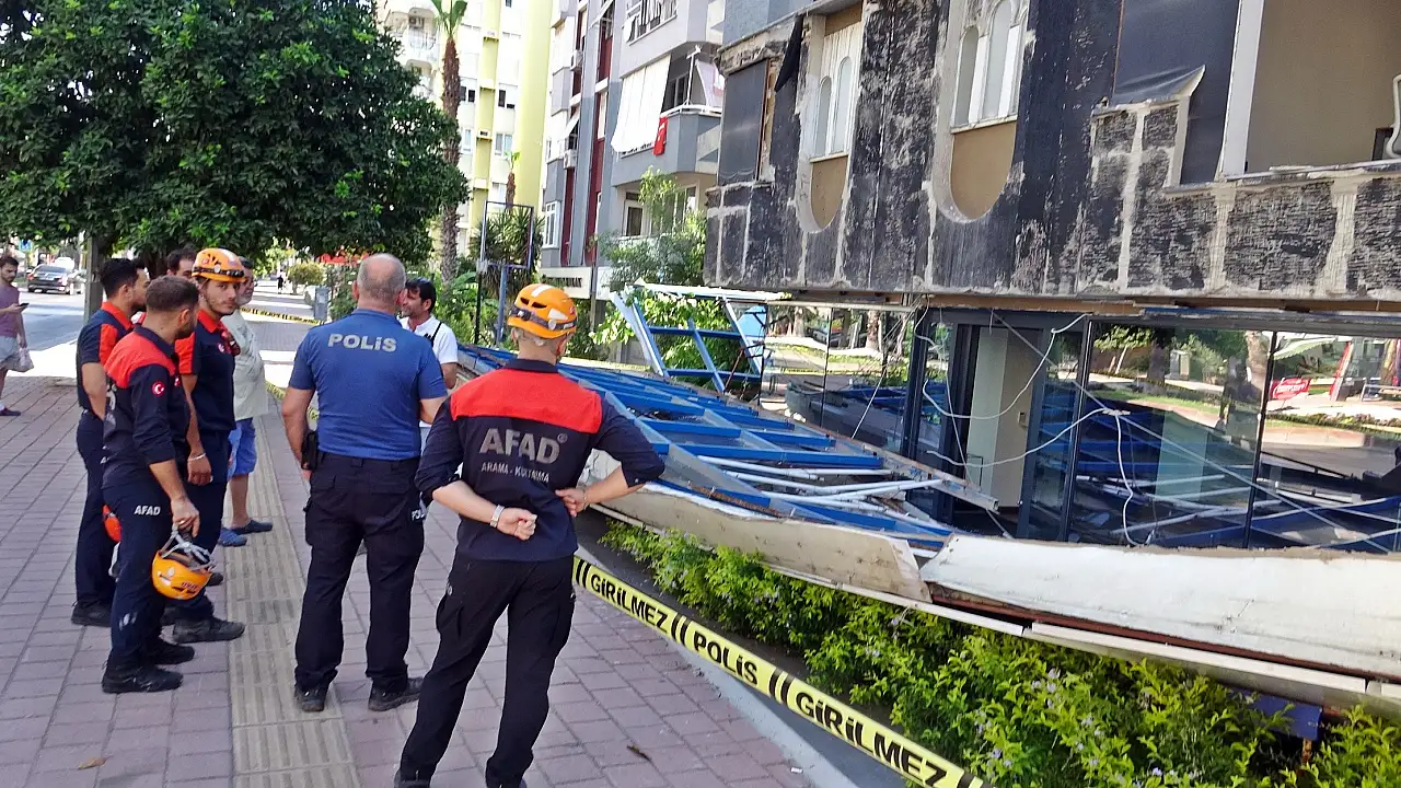 Olay, sabah 08.30 sıralarında Muratpaşa ilçesine bağlı Demircikara Mahallesi Burhanettin Onat Caddesi üzerindeki bir apartmanın giriş katında yaşandı. 5 katlı apartmanın zemin ve üst katında hizmet veren özel bir laboratuvarın ön ve iki yan cephesinde üzerinde reklam panolarının bulunduğu dış cephe kaplaması henüz belirlenemeyen bir nedenle yerinden koparak büyük bir gürültüyle düştü. Sese uyanan apartman sakinleri, durumu 112 Acil Çağrı Merkezine haber verdi. Yapılan ihbar üzerine olay yerine, polis, AFAD ve itfaiye ekipleri sevk edildi.