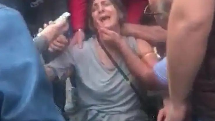 Yaralı kadının pazarda sinir krizi geçirdiği ve çevredekilerin de yaralı kadının koluna tampon yaptığı anlar vatandaşın cep telefonu kamerasına yansıdı. Görüntülerde yaralı kadın sinir krizi geçiriyor. Çevredekiler de yaralı kadının kolunu tampon yaparak kadına yardım ediyor.