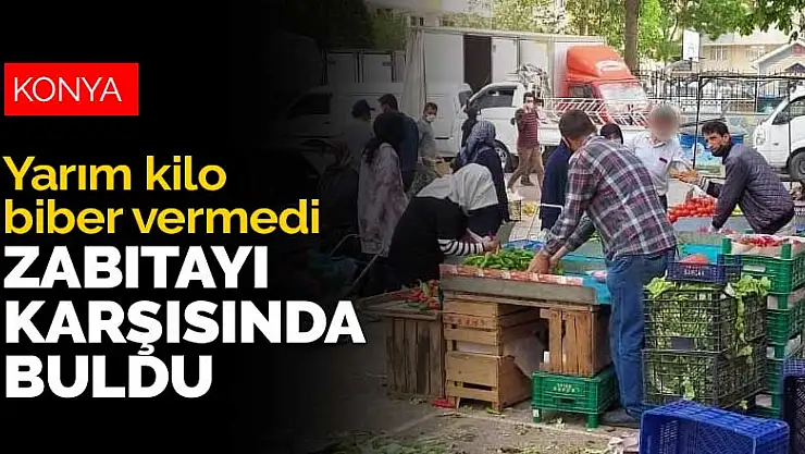 Konya'da kendisinden yarım kilo biber isteyen müşterisine 'yarım kilo vermem alacaksan 1 kilo al' diyen semt pazarı esnafı, şikayet üzerine gelen zabıta tarafından uyarıldı.
