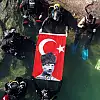 Aralarında Kaymakam Coşkun’un da yer aldığı ekip, 19 metre derinliğe dalarak su altında Türk bayrağı ve Atatürk posteri açtı.
