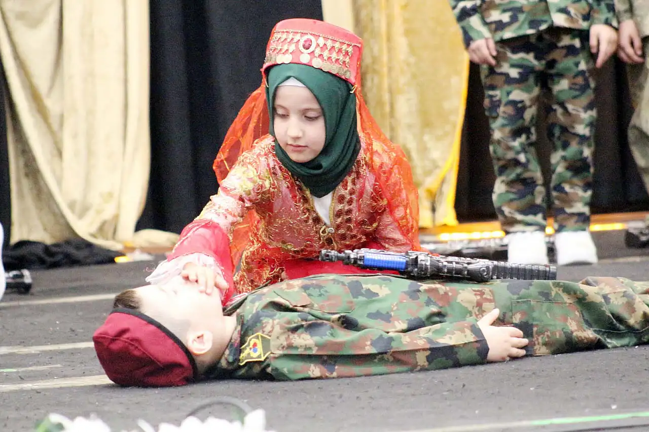 Program, Aksaray Güzelyurt Müftüsü İsmail Aydın’ın yaptığı anlamlı konuşmayla başladı. Ardından minik öğrenciler tarafından Kur’an-ı Kerim tilaveti yapıldı. Peygamber Efendimizi anlatan şiirlerle duygulandıran çocuklar, “Beytullah’ta Ben” şiiri eşliğinde hac gösterisi, namazın önemini anlatan sözlerle desteklenen namaz gösterisi ve anlamlı asker gösterisiyle izleyicileri mest etti.