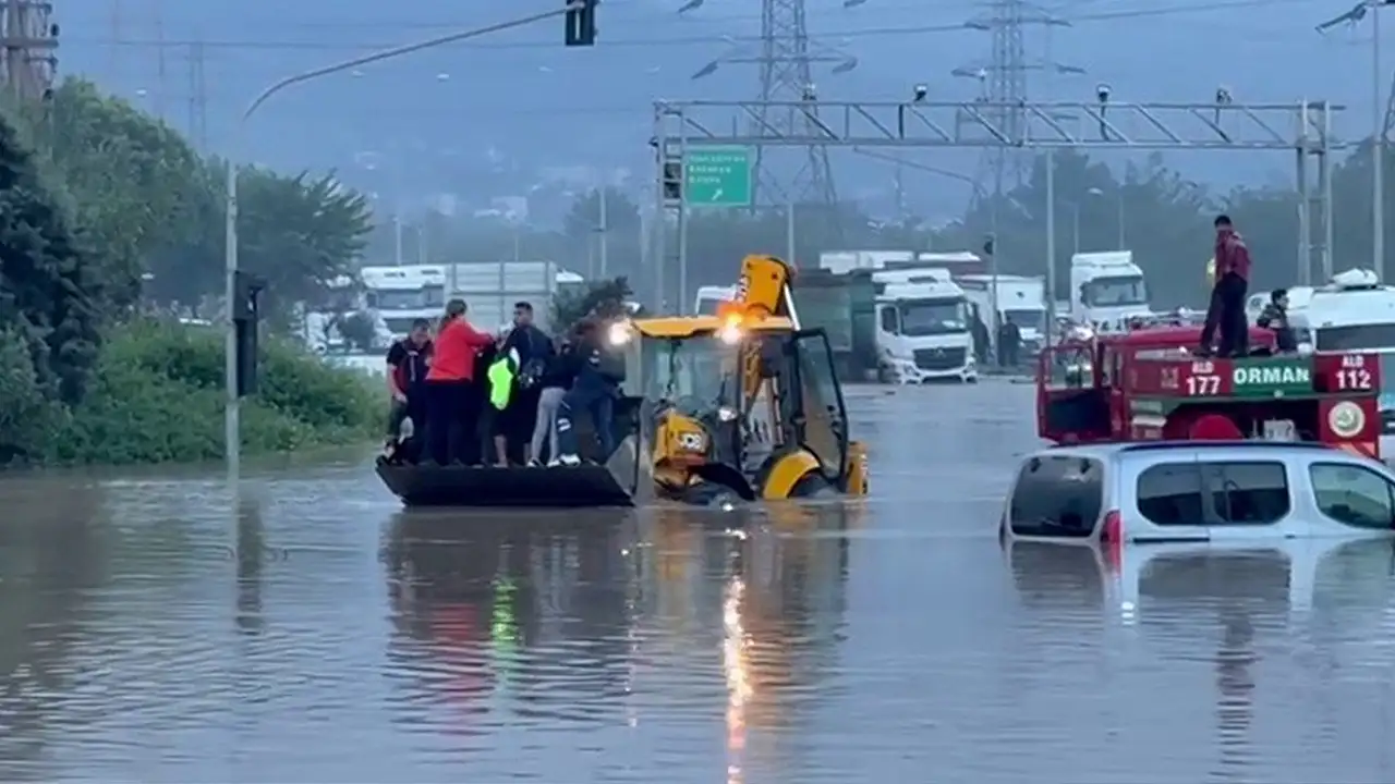 Öğrenci servislerinden biri sel sularında mahsur kalınca, öğrenciler belediye ekiplerinin kepçe yardımıyla güvenli bölgeye tahliye edildi. Vatandaşlar, bölgede her şiddetli yağışta benzer manzaraların yaşandığını belirterek kalıcı önlem çağrısında bulundu.