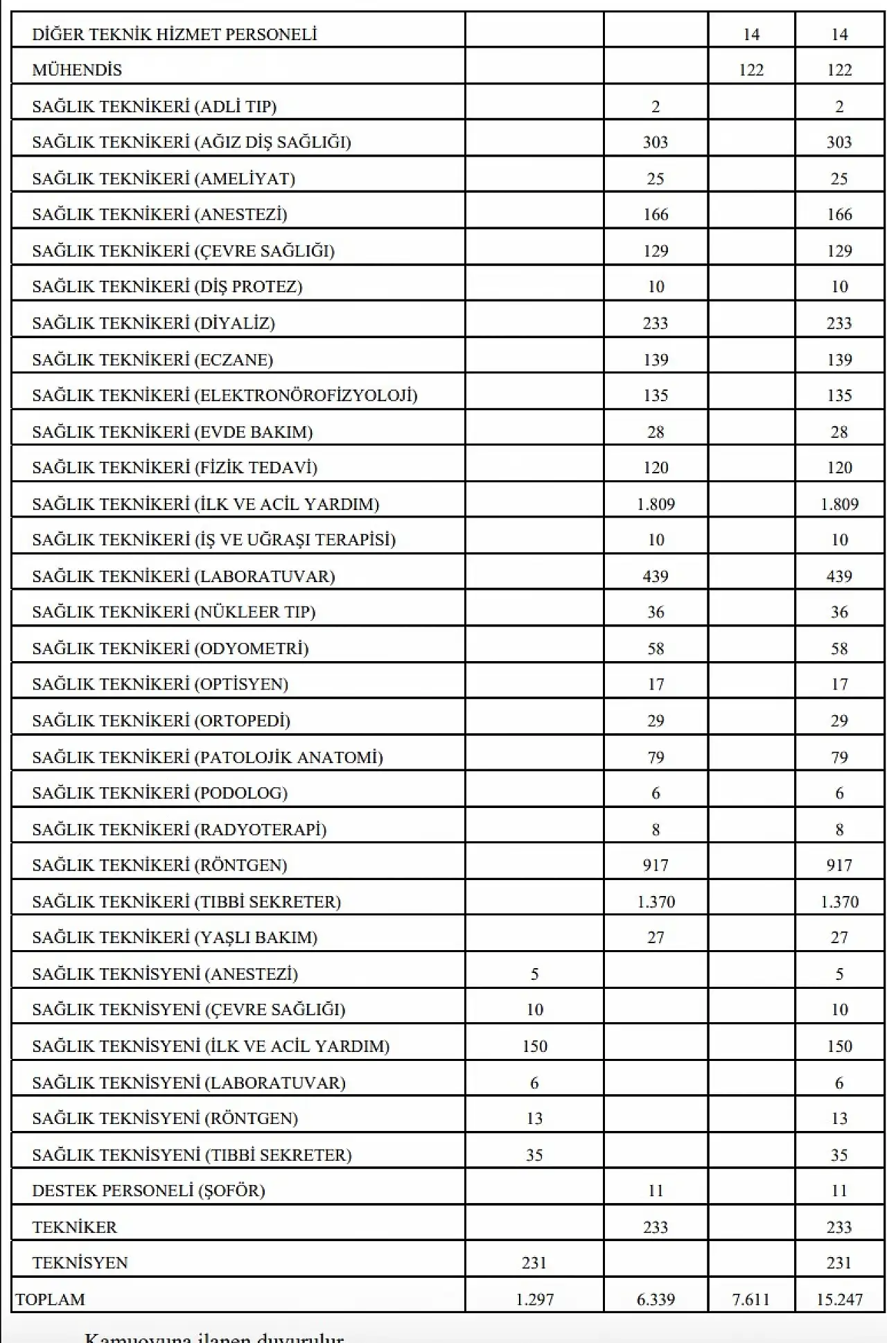 Bunların yanı sıra diyetisyen, fizyoterapist, psikolog, sosyal çalışmacı, mühendis, avukat gibi farklı meslek gruplarından da alım yapılacak.