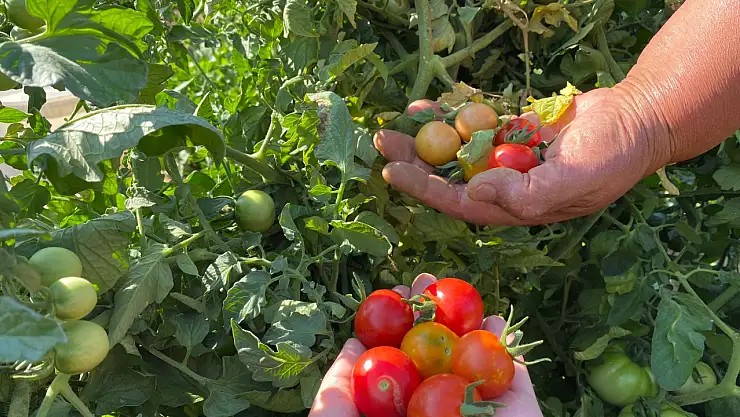 Akçakavak Köyü'nde domates, biber, patlıcan, fasulye, bamya, salatalık, kabak ve mısır gibi çeşitli sebze ve meyveler yetiştiren Düzgün, "Yetiştirdiğimiz ürünler çocuklarımıza ve dostlarımızla paylaşmaya yetiyor. Ürünlerimiz çok lezzetli ve sağlıklı ayrıca ürünlerimizden hayvanlara da vererek hem israfı önlüyoruz hem de sahipsiz hayvanlara fayda sağlıyoruz" dedi.
