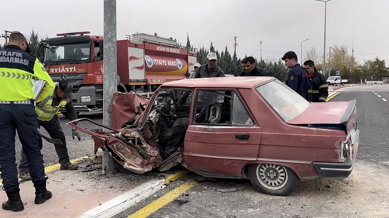 Aksaray Organize Sanayi Bölgesi'nde kontrolden çıkan otomobil refüjdeki aydınlatma direğine çarptı. Hurdaya dönen araçta sıkışan sürücü ve eşi itfaiye ekiplerince kurtarıldı. Hastaneye kaldırılan iki yaralının hayati tehlikesi sürüyor.