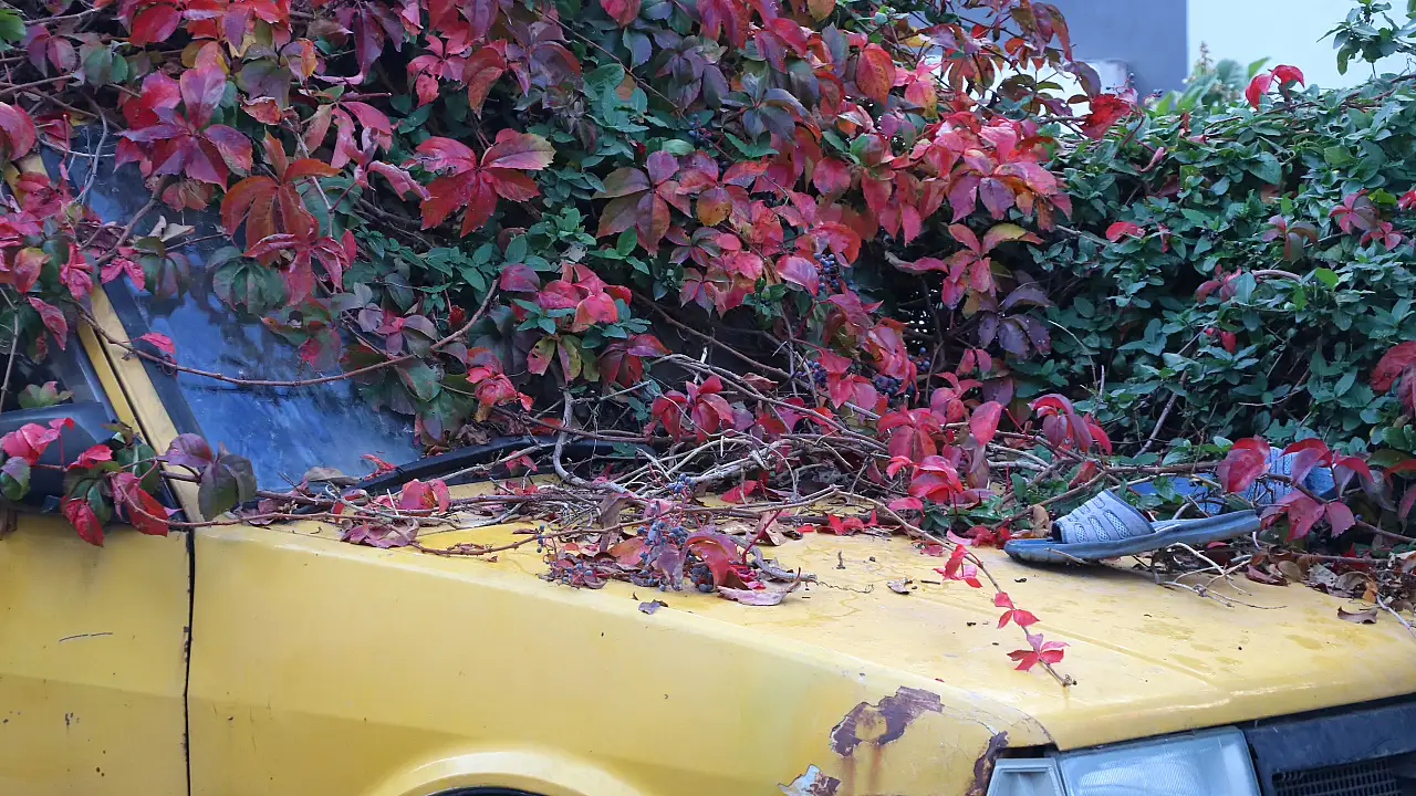 İzmir'de sahibi vefat eden otomobil, yıllar içinde sarmaşıklarla kaplanarak görsel bir şölen oluşturdu. Karabağlar sokaklarında unutulan araç, adeta doğa ile bütünleşerek sokak canlarına da ev sahipliği yapıyor. Mahalleli ise otomobilin kaldırılmasını istiyor.