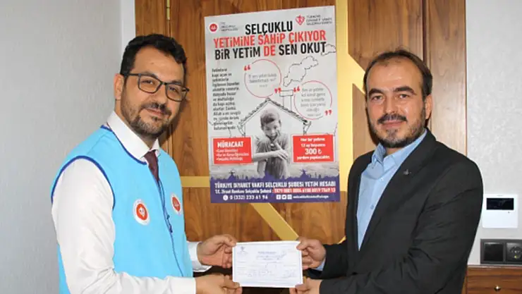 Selçuklu Müftülüğü Esader Valide Sultan Kur’an Kursundan 'Selçuklu Yetimine Sahip Çıkıyor' Bir Yetim de Sen Okut' projesine anlamlı destek verdi. TDV Şube Temsilcisi Hadi Ülgen “Ekim ayı itibariyle ilk ödemesini yaptığımız yetim projesinde, 1170 öğrencimizin hesabına 351.000 ₺ aktardıklarını söyledi.”
