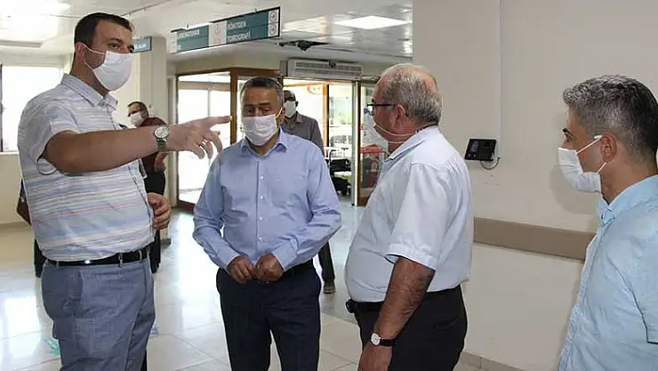 Devlet Hastanesi Başhekimi Op. Dr. Seyit Ali Deniz, Başhekim Yardımcısı Yunus Açıkgöz ve Hastane Müdürü Abdullah Ağılcı’yı ziyaret eden Belediye Başkanı Mehmet Tutal, hastanede tedavi gören hastalar hakkında bilgi aldı.