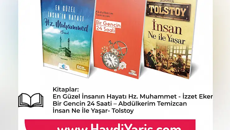 Yarışmaya www.HaydiYaris.com adresi üzerinden kaydolan lise öğrencileri yarışma kitaplarını 5-15 Aralık tarihleri arasında Bahaddin Paslı Kültür ve Sanat Evinden, Ortaokul öğrencileri ise Enderun Gençlik Merkezinden ücretsiz olarak temin edecek.