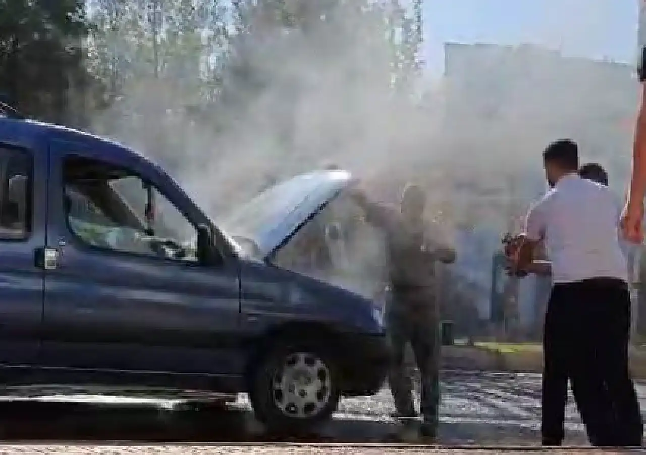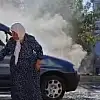 Seyir halindeki araç alev aldı: yaşlı kadın son anda kurtuldu!