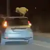 Seyir halindeki aracın üzerine çıkıp dans etti