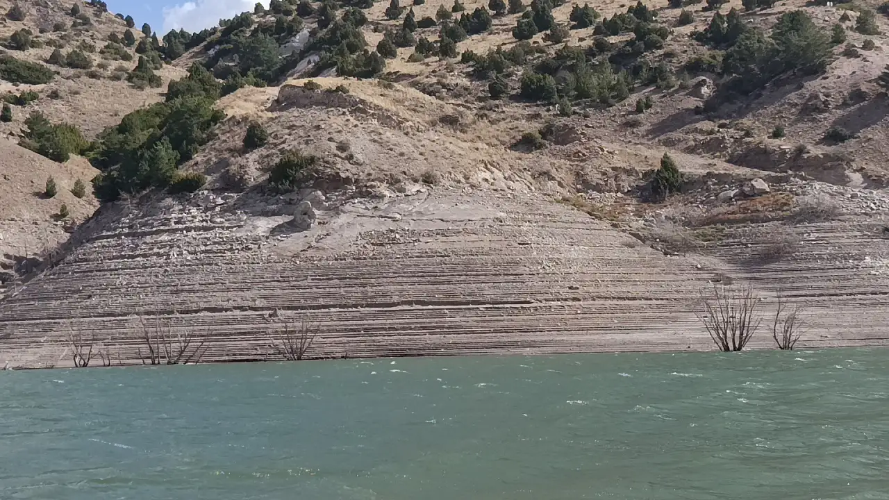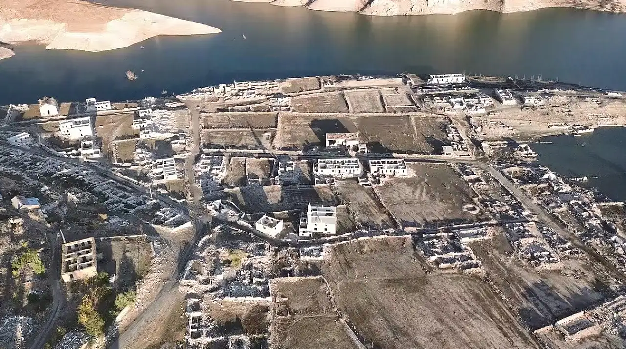 Su seviyesinin düşmesi sonucu, eski yerleşim yerinde bulunan köy evleri, cami, kilise ve diğer yapılar tekrar görünür hale gelirken, vatandaşlar, baraj gölünün yaklaşık 50 metre çekildiğini belirtti.