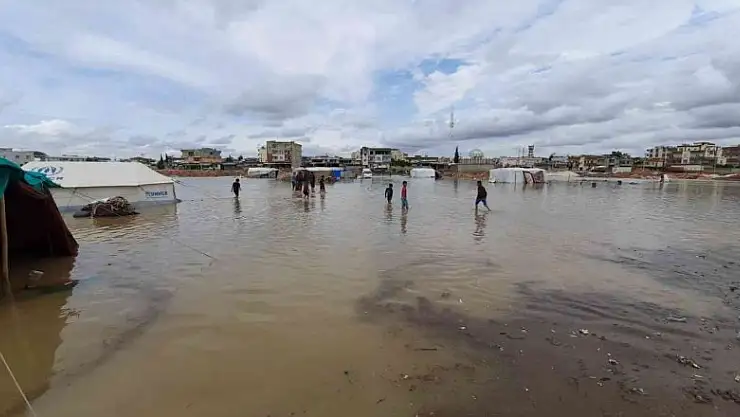 Suriye sınırındaki mültecilerin çadırlarını sel suları bastı