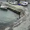 Otomobilin denize düştüğü o anlar ise güvenlik kamerasına yansıdı. Görüntülerde seyir halindeki otomobilin denize düştüğü ve çevredekilerin denize düşen araca yardıma koştuğu, denizdeki balıkçı teknesindeki bir kişinin ise denize atlayarak yardıma geldiği görülüyor.