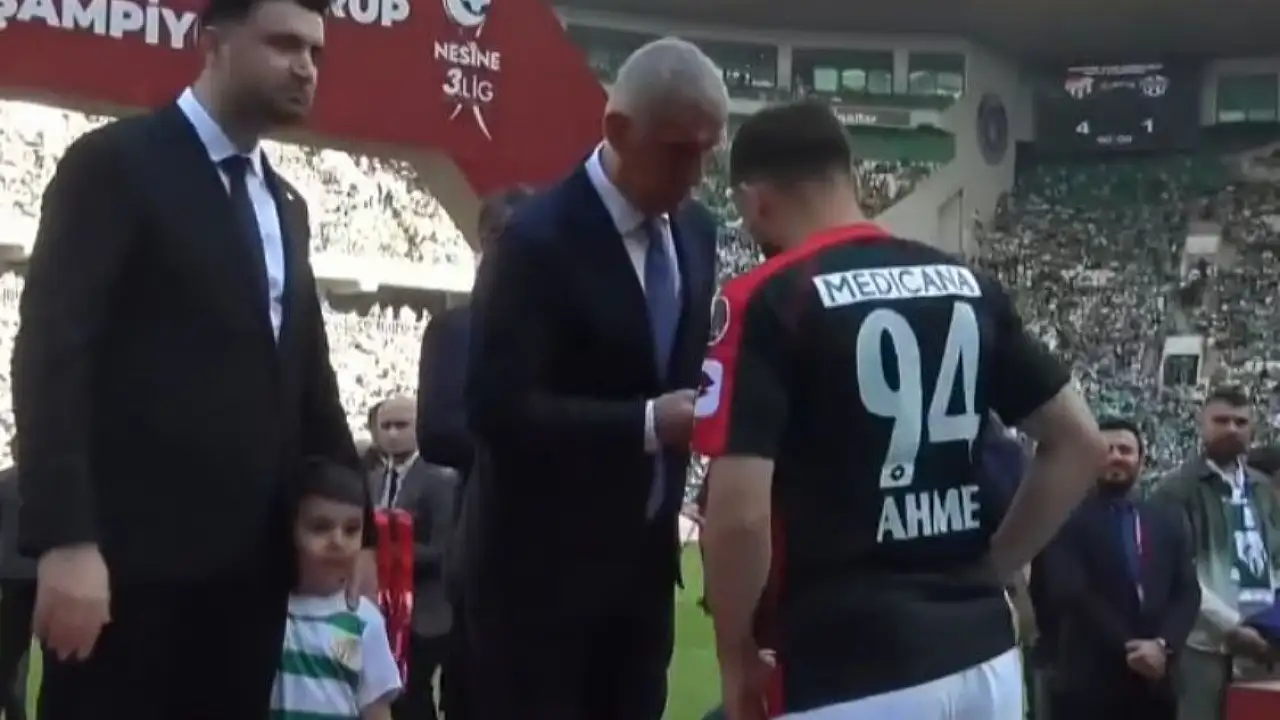 Bursaspor'un şampiyonluk kutlamalarında duygusal anlar yaşandı. Takımın tecrübeli savunmacısı Taha Can Velioğlu, kutlamalara merhum futbolcu Ahmet Çalık'ın Gençlerbirliği formasıyla çıktı.