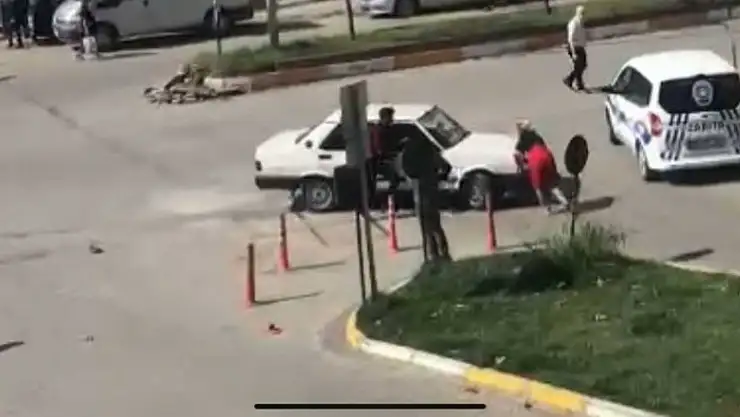 Edinilen bilgiye göre olay, Acılık Caddesi mevkisinde yaşandı. Aralarında henüz bilinmeyen bir nedenle bir otomobil sürücüsü ve bir kadın sözlü olarak tartışma yaşadı. Büyüyen tartışma sonrası kadın olay yerinden hızla ayrıldı. Otomobil sürücüsü ise aracı kadının üzerine sürdü. Can havliyle park halindeki zabıta aracının arkasına saklanan talihsiz kadın, ayağındaki ayakkabıları çıkartıp otomobile fırlattı. Otomobil sürücüsü ikinci kez kadının üzerine aracı sürmeye çalıştı. Bir süre aracın önünde sürüklenen kadını, çevredeki bir vatandaş son anda çekerek kurtardı. Sürücünün arkasından bağırarak tepki gösteren kadının, polis merkezine giderek şikayetçi olacağı öğrenildi. O anlar ise saniye saniye güvenlik kamerasına yansıdı.