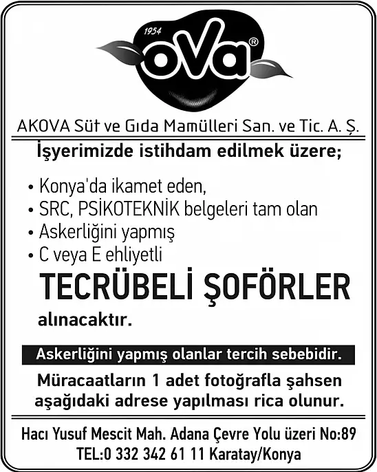 Haberler Konya Eleman İlanları Tecrübeli Şoför alınacaktır. Tecrübeli Şoför alınacaktır. C ve E ehliyetli SRC , Psikoteknik belgeleri tam ŞOFÖRLER alınacaktır.Detaylar ilan görselinde. PAYLAŞ 08.08.2025 14:52 Güncelleme: 08.08.2025 14:52 TAKİP ET 1 1 PAYLAŞ Görsel - 1 : Tecrübeli Şoför alınacaktır. Hakimiyet Gazetesi - Hakimiyet Haber - Bizi Sosyal Medyada Takip Edin! Facebook X.com Instagram