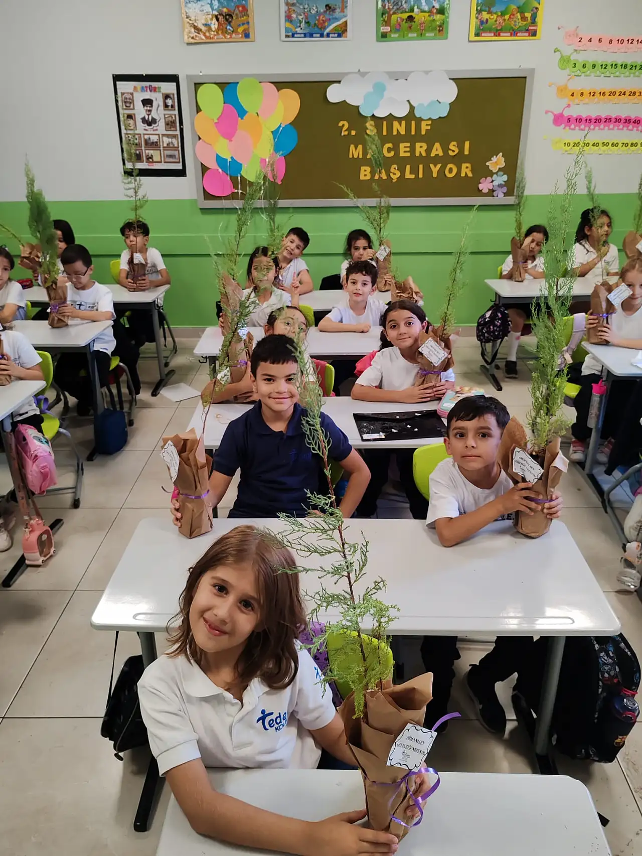 Tedem Kolejinde öğrencilere dağıtılan fidanlarla Yeşil Vatan Projesine destek verilerek, çevre bilincinin ve toplumsal duyarlılığın gelişimine katkıda bulunuldu.