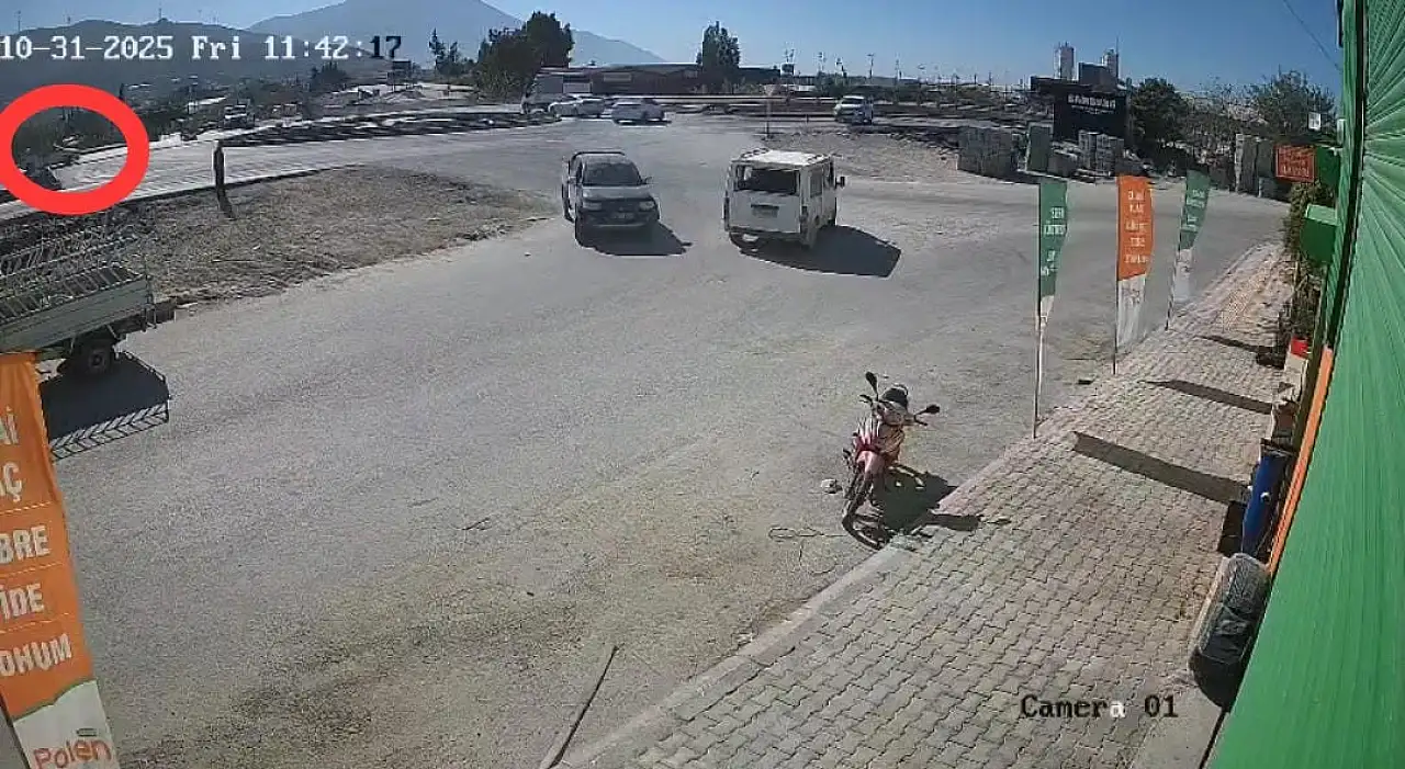 Hafif ticari aracının 2 motosiklete çarpıp 1 kişinin öldüğü 5 kişinin yaralandığı kaza anı güvenlik kamerasınca görüntülendi.