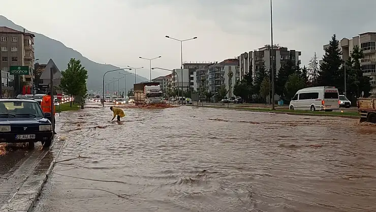 Konya'nın Beyşehir ilçesinde sabah saatlerinde etkili olan kuvvetli yağış ilçe merkezinde yolları adeta göl ve ırmağa dönüştürdü.