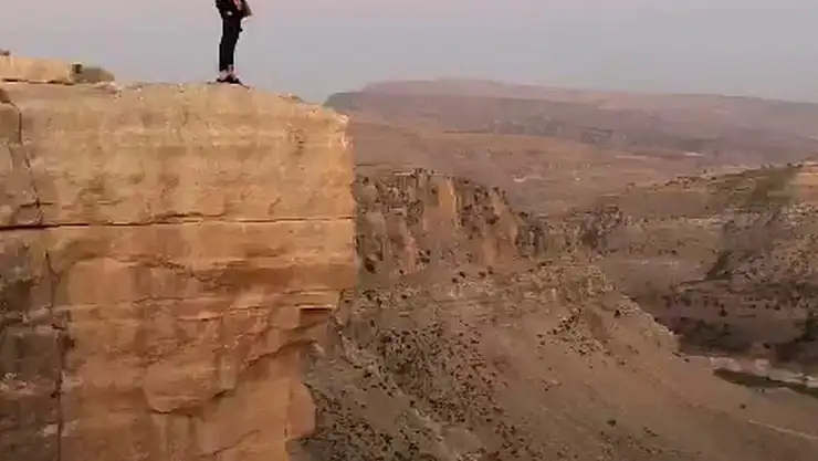 Siirt'te bazı vatandaşlar, kent merkezine 3 kilometre uzakta bulunan Deyr mevkiinde tehlikeli alanda canlarını tehlikeye atarak fotoğraf çekiyor. Vatandaşlar, muhtemel bir hatanın hayatlarına mal olacağını bile bile metrelerce yüksekten fotoğraf çekmeye devam ediyor.