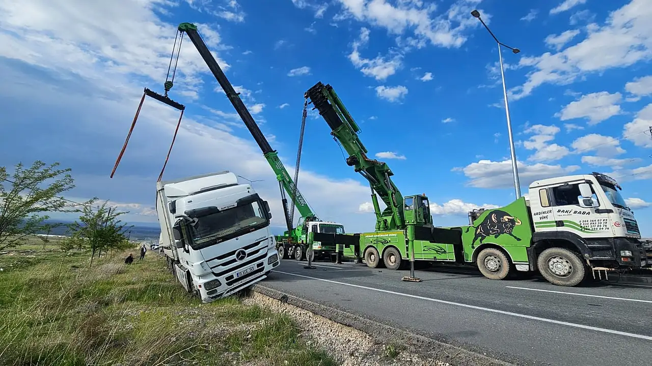 Iğdır’da sürücüsünün direksiyon haberini kaybettiği bir tır, toprağa saplandı. Yaşanan kazada can ya da mal kaybı olmadı.
