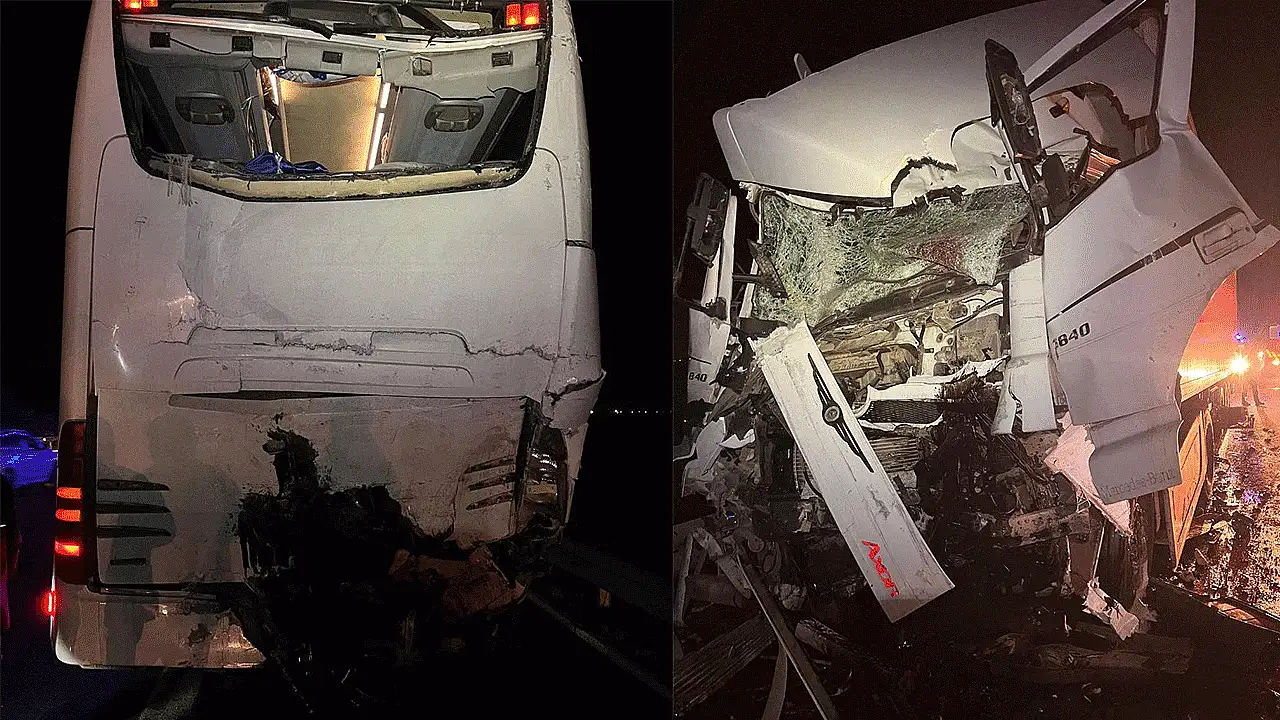 TIR tur otobüsüne arkadan çarptı: 14 yaralı