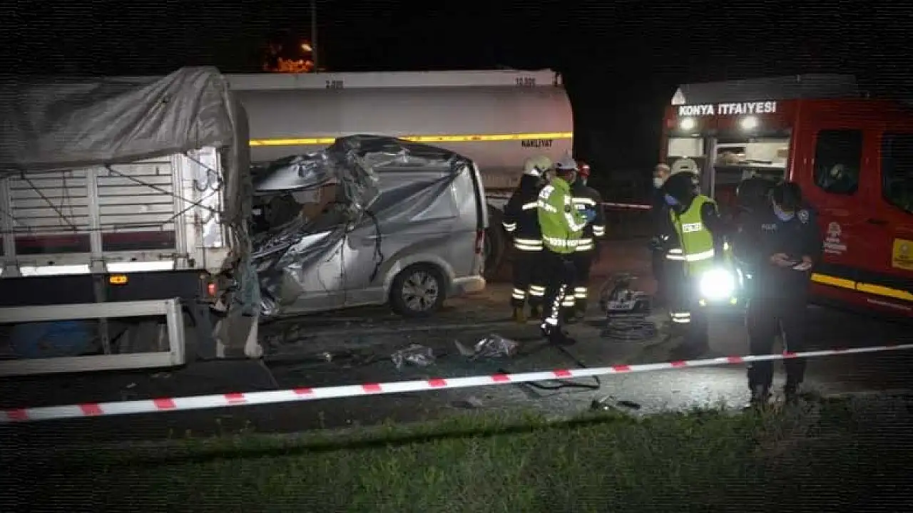 Konya'nın Ereğli ilçesinde tırın dorsesine arkadan çarpan minibüsün sürücüsü hayatını kaybetti.