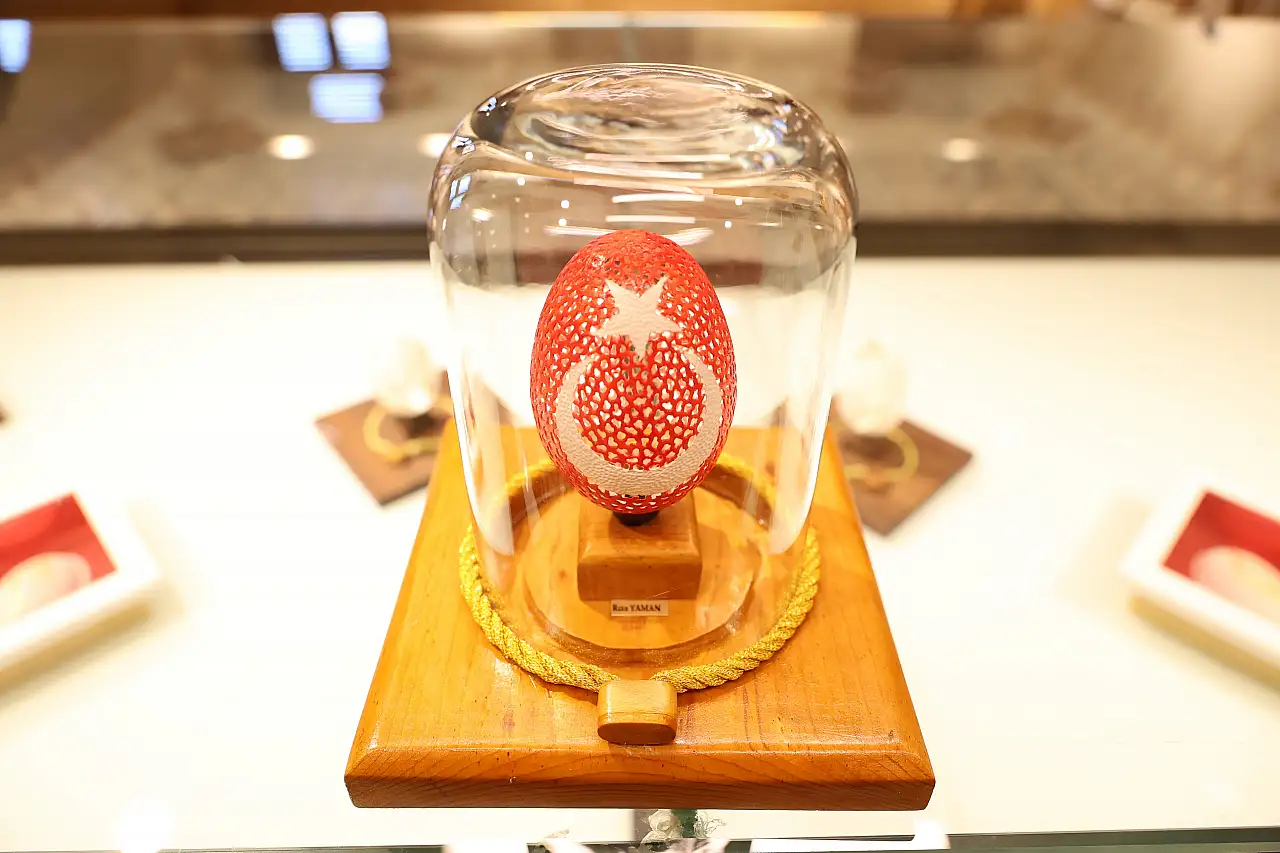 Ahşap ve yumurta kabuğu oyma sanatçısı, Kültür ve Turizm Bakanlığı Somut Olmayan Kültürel Miras Taşıyıcısı Rıza Yaman ile Nahhat Abdullah Şanlı’nın zarif eserlerinden oluşan sergide; sedef kakma, gümüş kakma, ahşap oyma ve yumurta kabuğu oyma sanatının en seçkin örnekleri bulunuyor.