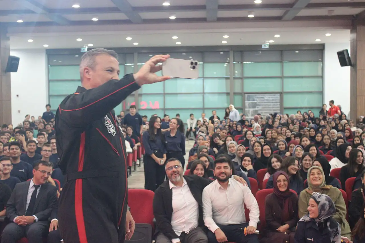 Türkiye'nin İlk Astronotu Alper Gezeravcı, Konya'da öğrencilerle bir araya gelerek, uzay yolculuğunda yaşadığı deneyimleri paylaştı.