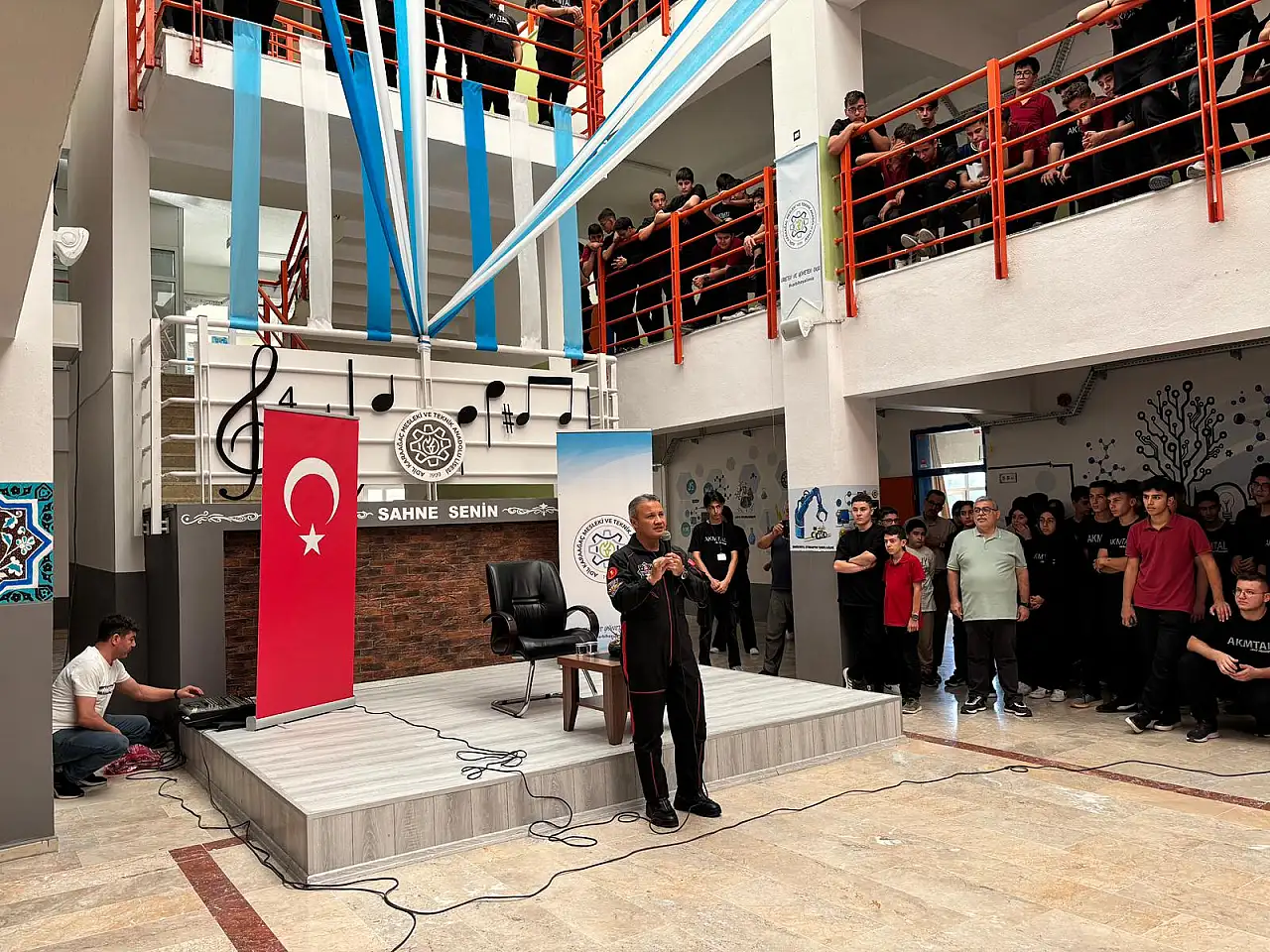 Gençlere ideallerinin peşinden gitmelerini ve asla vazgeçmemelerini tavsiye eden Alper Gezeravcı'ya, öğrenciler yoğun ilgi gösterdi.