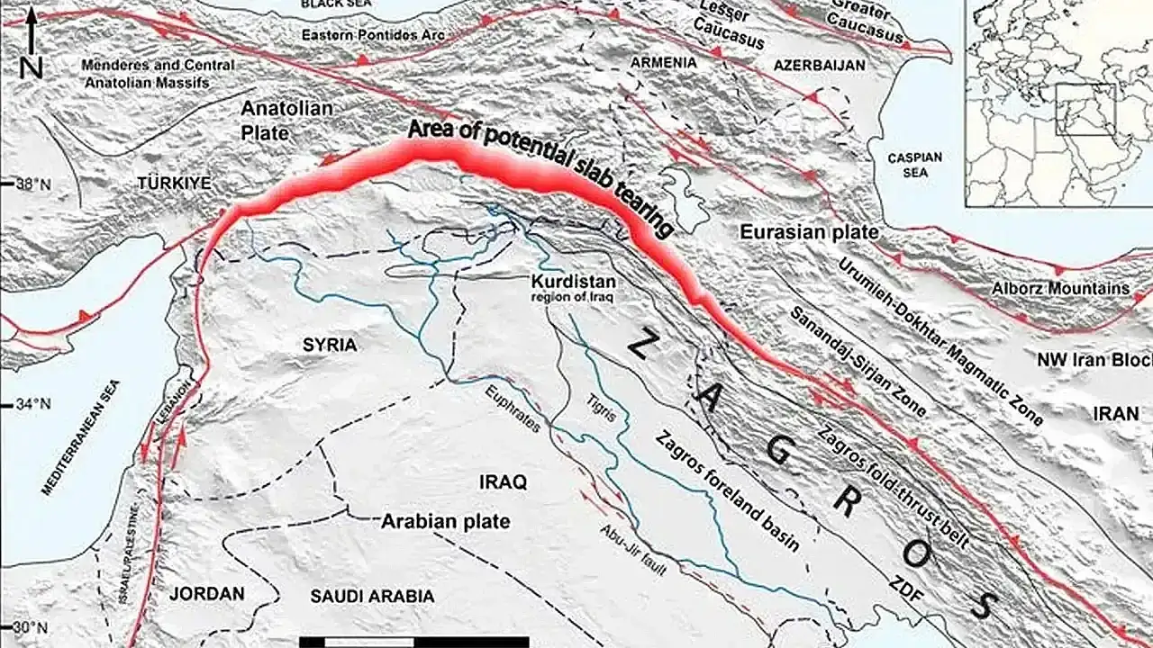 Bilim insanları, Türkiye'nin güneydoğusundan İran'a uzanan 1.500 kilometrelik gizli bir fay hattı keşfetti. Bu jeolojik yapı, Türkiye'nin her yıl 2–3 santimetre batıya, Avrupa'ya doğru kaydığını ortaya koyuyor. Uzmanlara göre milyonlarca yıl içinde Akdeniz kapanabilir ve Türkiye, Libya ile kara komşusu haline gelebilir.