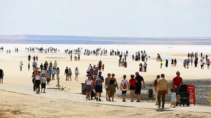 Derinliği 10 ile 20 santimi geçmeyen gölü binlerce yerli yabancı turist ziyaret ederken, Tuz Gölü bayramda da ziyaretçileri tarafından ilgi gördü. 7'den 70'e her yaştan ziyaretçinin geldiği Tuz Gölü'nde çocuklar tuzlu suda oyunlar oynarken, gençler muhteşem doğasıyla Tuz Gölü'nde fotoğraflar çektirdi.