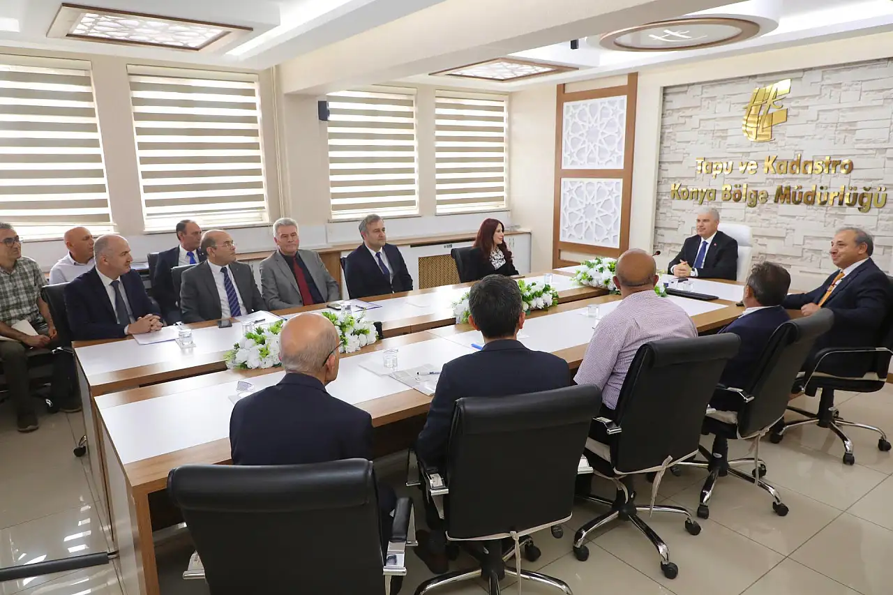 Konya Valisi İbrahim Akın ve beraberindeki heyet Konya Tapu ve Kadastro V. Bölge müdürlüğünü ziyaret ederek yetkililerden çalışmalar hakkında detaylı bilgi aldı
