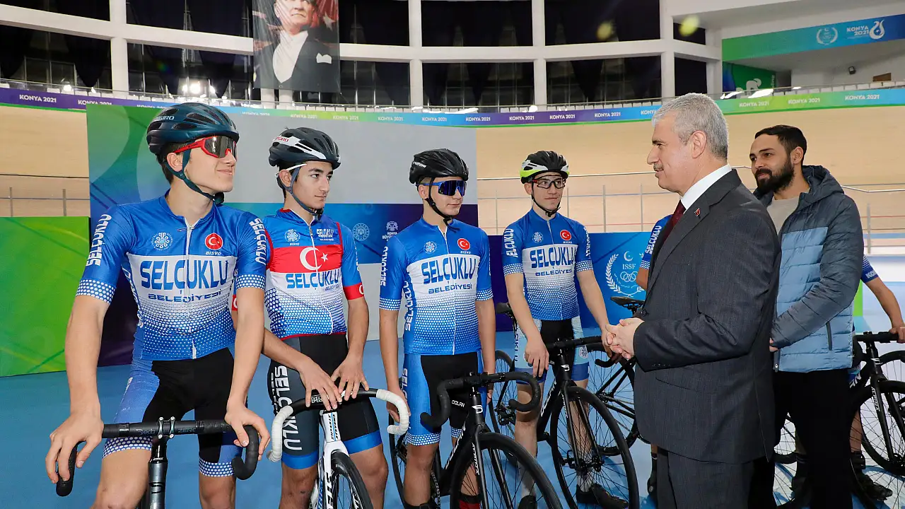 Konya Valisi İbrahim Akın, Türkiye'nin ilk kapalı olimpik veledromu olan Konya Olimpik Veledromu'nu ziyaret edip incelemelerde bulundu.