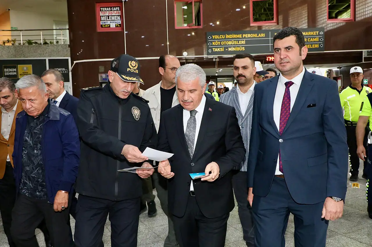 Kurban Bayramı öncesinde artan seyahat yoğunluğu nedeniyle Konya Valisi İbrahim Akın, Konya Şehirler Arası Otobüs Terminali’ni ziyaret ederek alınan trafik tedbirlerini yerinde inceledi.