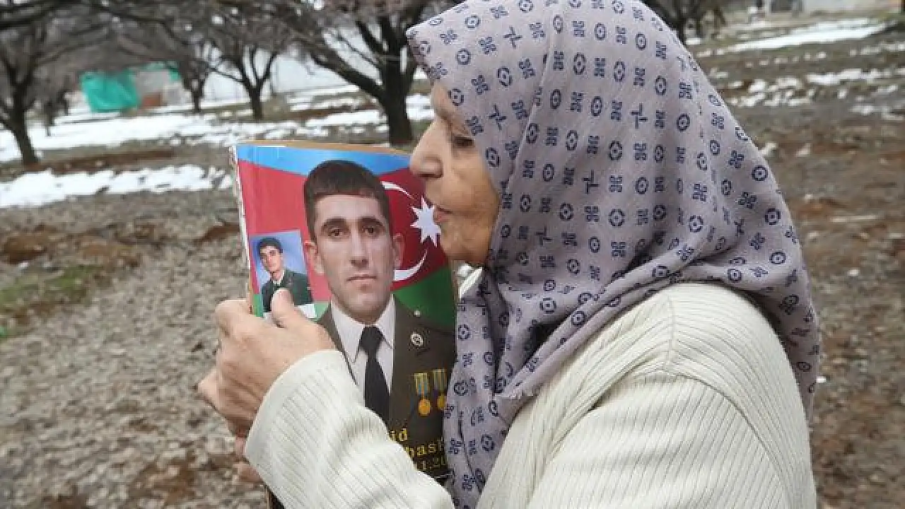 Yetkililer, üzerinde 10 Kasım 2020'de Karabağ'da şehit olan Elgün Abbaslı'nın fotoğrafının yer aldığı koliyi, Hakkari'de şehit olan Jandarma Astsubay Cevdet Şişman'ın annesi Ayşe Şişman'a teslim etti.