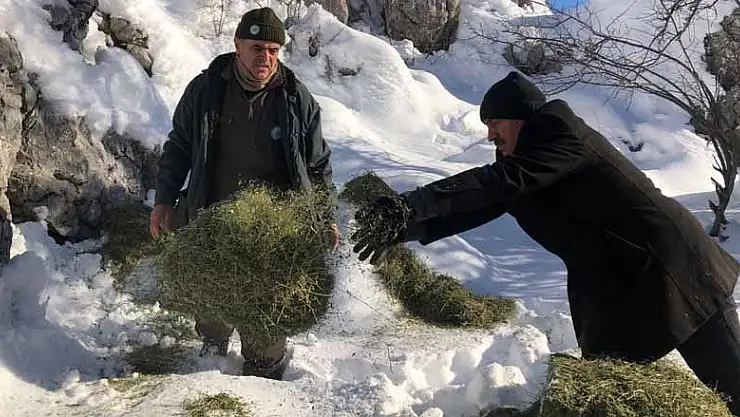 Belediye Başkanı Mehmet Tutal, Beyşehir Milli Parklar Şefi Fatih Demir, şefliğe bağlı ekipler ve Madenli Muhtarı Muammer Yüksel ile belirli noktalara yem bırakarak yaban hayvanlarının yiyecek sıkıntısı çekmesini önledi.