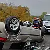 Zonguldak'ın Çaycuma ilçesinde meydana gelen trafik kazasında yolun ıslak ve zeminin kaygan olması nedeniyle sürücüsünün direksiyon hakimiyetini kaybettiği otomobil kontrolden çıkarak taklalar attı. Otomobil kaza sonrasında ters şekilde durabildi. Kazada iki kişi yaralandı.