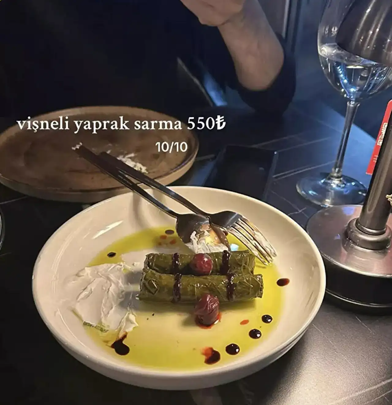 Instagram'da @denetletr hesabının paylaştığı görsele göre, tabakta sadece iki adet yaprak sarma, biraz süsleme ve vişne eşliğinde sunulan porsiyon, kısa sürede yüzlerce yorum ve etkileşim alırken, kullanıcıların çoğu “evde yapın yiyin” yorumlarında bulundu.