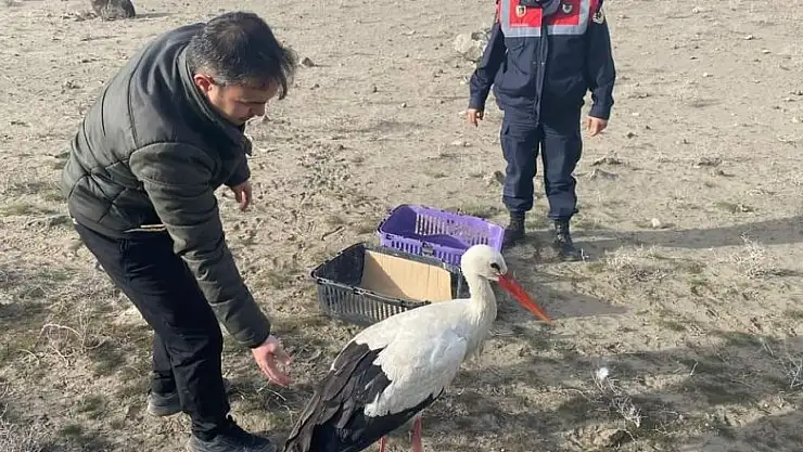 Iğdır'da, havaların ısınması ile birlikte göçten dönerken hafif yaralı ve bitkin olarak bulunan leylek tedavisi sonrası doğaya bırakıldı.
