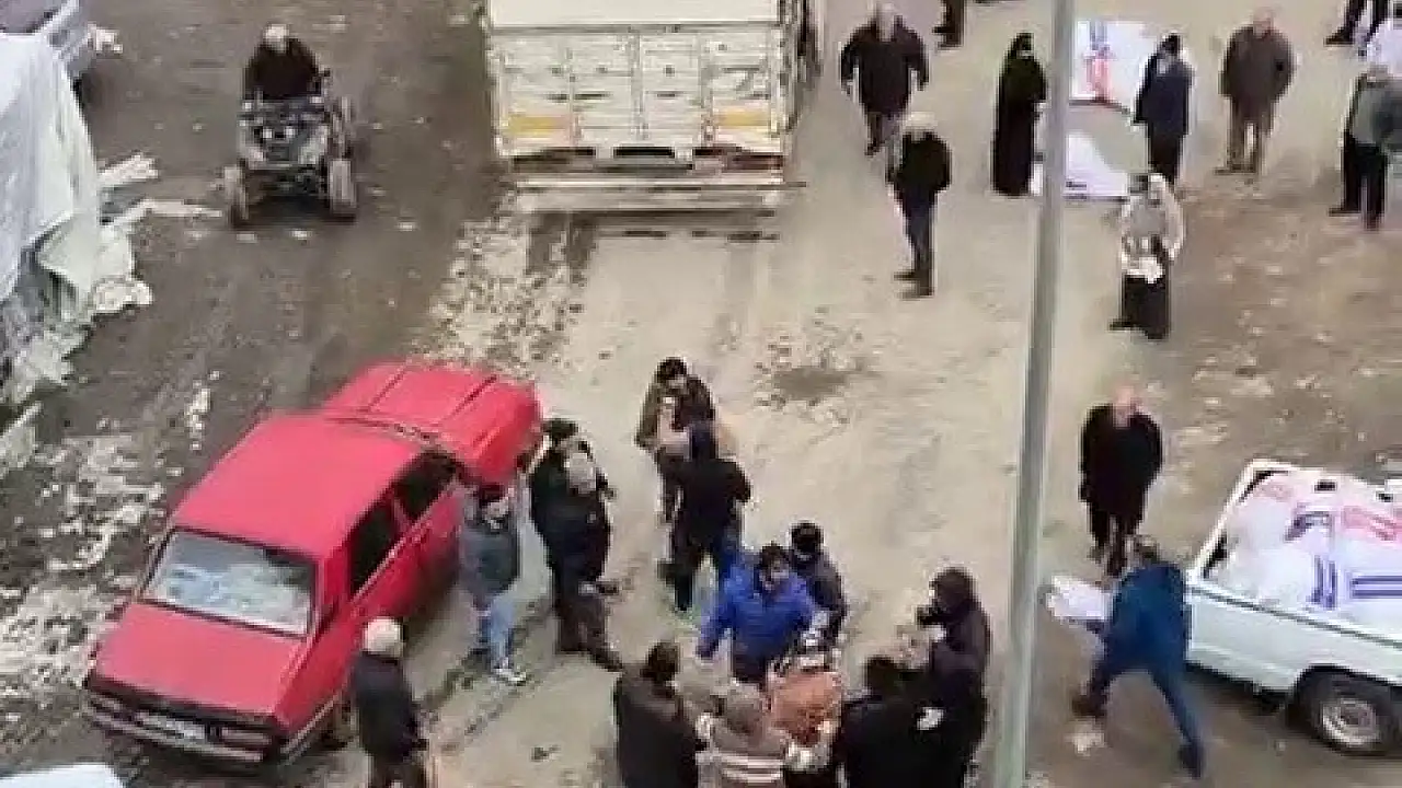 Erzurum'un Uzundere ilçesinde yardım dağıtımı esnasında vatandaşlar tekme tokat birbirine girdi.